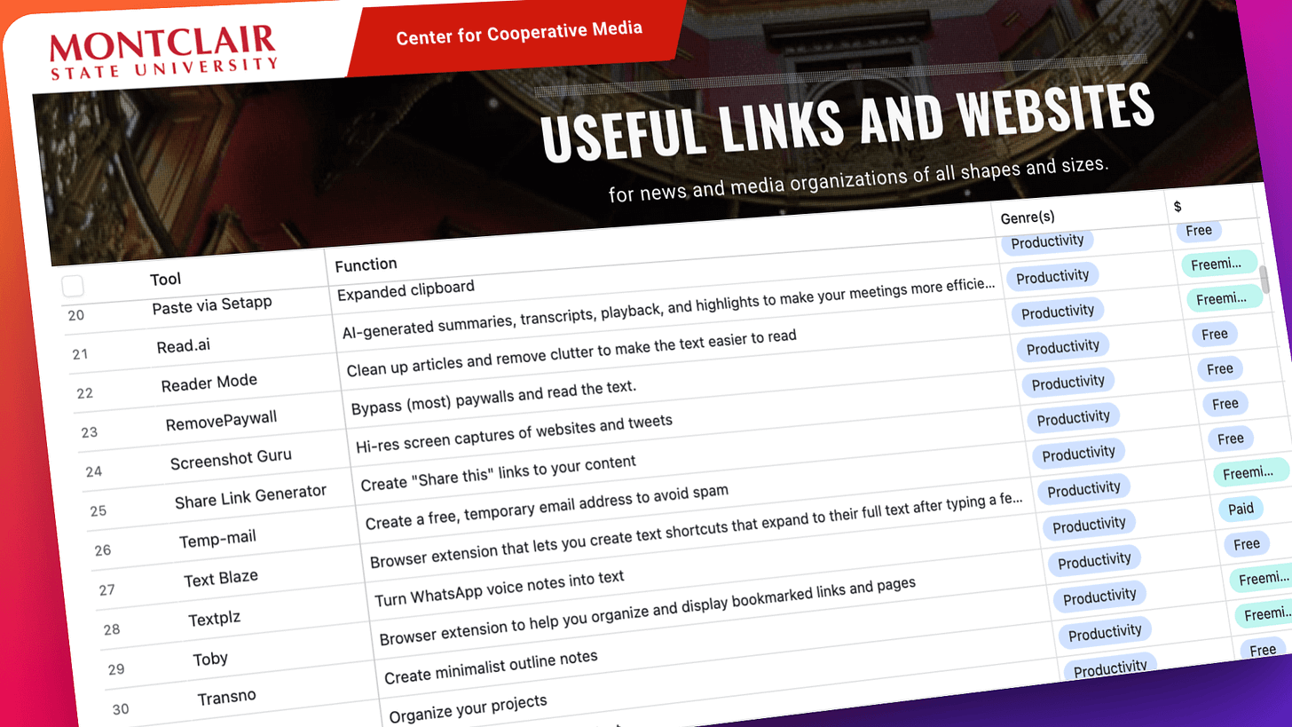 In the guest post below, Joe Amditis shares a bunch of useful resources. A former CUNY student of mine, Joe now serves as associate director of operations at the Center for Cooperative Media at Montclair State University.