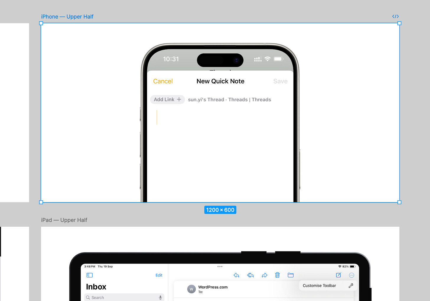 Any time I need to feature a screenshot from any of these devices, I transfer the screenshot to my Mac, hop over to Figma and drop it on the relevant frame.