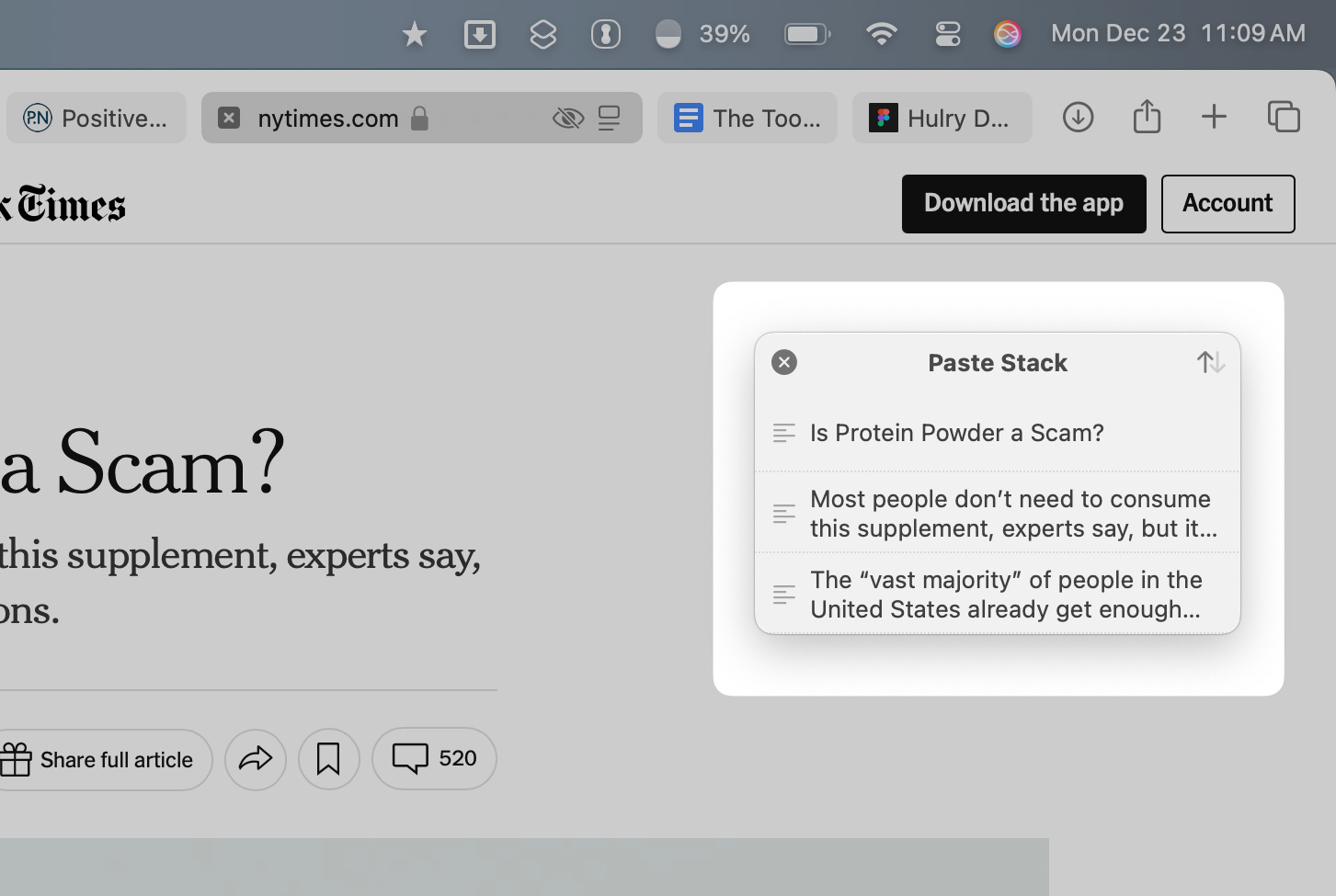 Second, this app has a neat feature called Paste Stack, which allows me to copy multiple items into a stack like this: