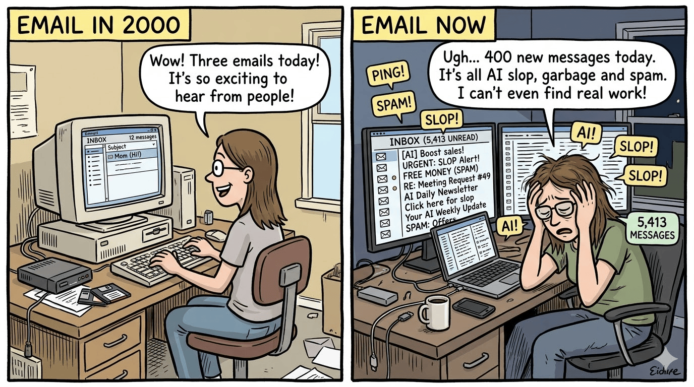 Let’s call it “Vibe Drawing.” Just as vibe coding has enabled people without technical skills to develop useful apps, image generation helps those of us who are artistically challenged to convey ideas visually. I use it to turn raw ideas into graphics, diagrams, illustrations, or cartoons. Here’s a short prompt I used for the image below.