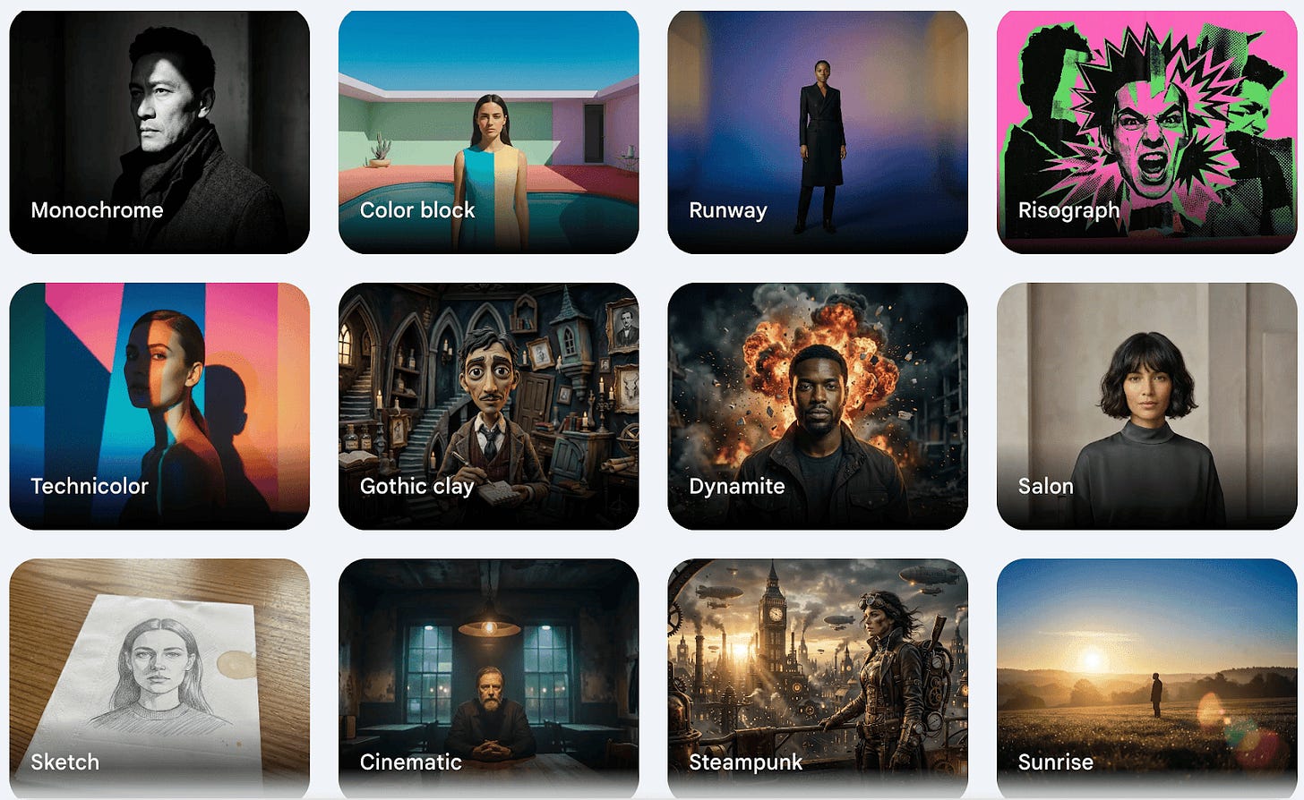 Tip: Upload a screenshot or photograph a paper sketch for Gemini to use as a reference image, or pick a style from the grid of options Gemini shows you (see above) to provide visual context.